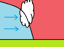 Op de weerkaarten herken je koufronten aan een dikke blauwe lijn met driehoekjes.